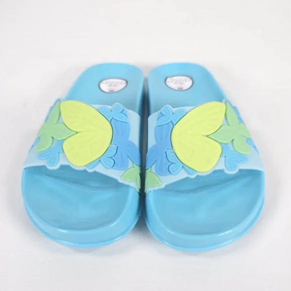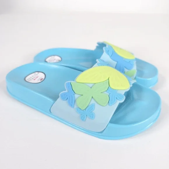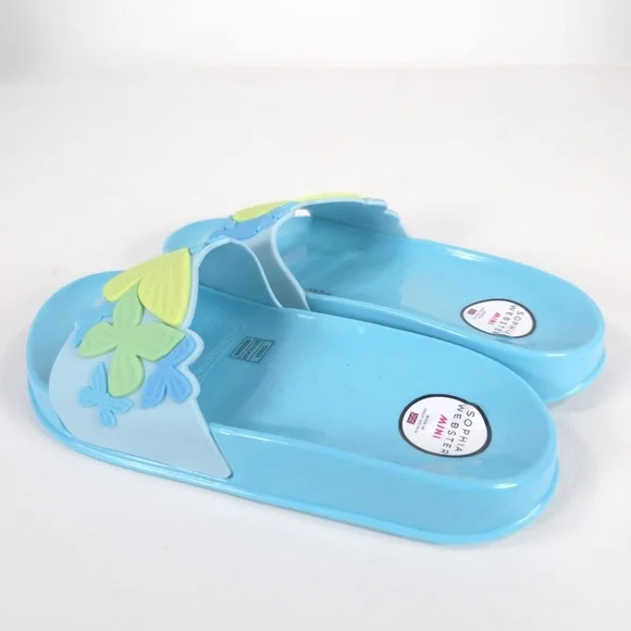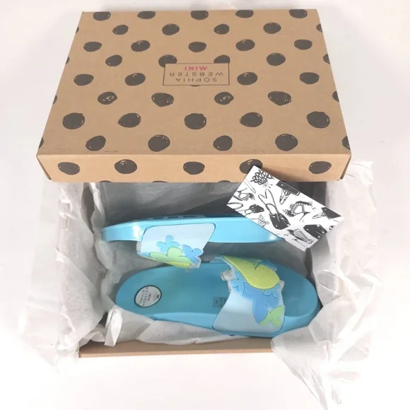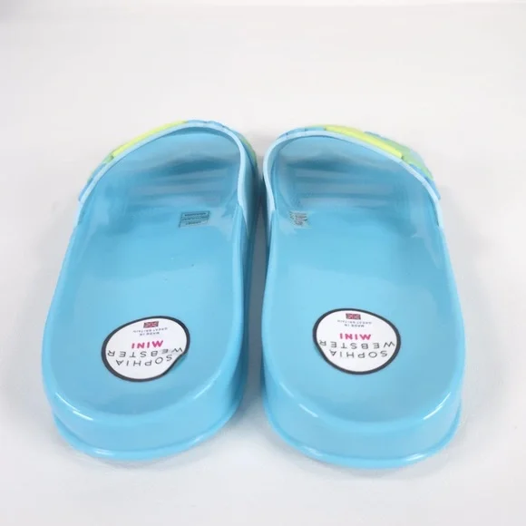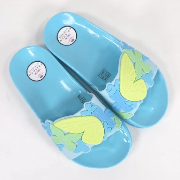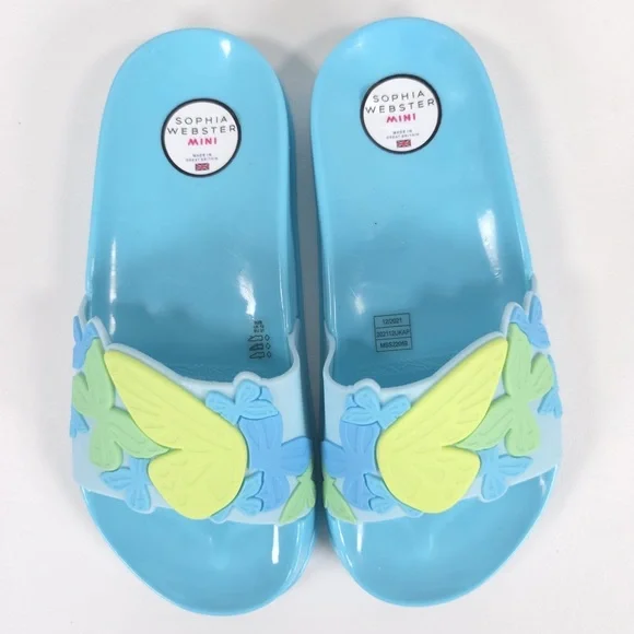 NWB SOPHIA WEBSTER Mini Kid Girl Blue Butterfly Jelly Slide Sandal Spearmint & Yellow MSS22059MADE IN GREAT BRITAIN 🇬🇧 They'll love to lounge in this lightweight slide sandal features a whimsical 3D butterfly textured vamp strap.Synthetic upper, lining and soleTHE SOPHIA WEBSTER MINI COLLECTION IS DESIGNED TO PROVIDE BEAUTIFUL FOOTWEAR FOR CHILDREN. THE SHOES ARE NOT TOYS.PLEASE DON'T LET YOUR CHILD PULL, CHEW OR DO ANYTHING WITH THE SHOES THAT MIGHT CAUSE RISK TO THEIR SAFETY WITHSPECIAL ATTENTION PAID TO THE RISK OF CHOKING. WHILST IT IS UNLIKELY ANY OF THE EMBELLISHMENTS SHOULD BECOME LOOSE PLEASE DO CHECK THE SHOES REGULARLYSUPER CUTE!!FAST SHIPPINGWELCOME OFFERS & COUNTEROFFERSItem stored in a smoke-free and pet-free environment.Feel free to send me any questions.Please review all photos and zoom in to see the exact condition, details, and measurements.IDIOMAS/Languages: Español / EnglishYou can visit my closet/online store, where you can find a wide variety of recognized and prestigious brands, as well as garments made of CASHMERE, WOOL, LEATHER, LINEN, SILK, among others, in new and pre-owned conditions. Don’t hesitate to take a look, ask if you have any questions, or make an offer.