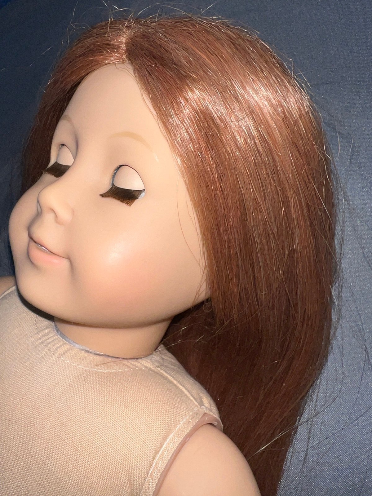 First Edition American Girl Doll Felicity by Pleasant Company. She is a 1991 First Edition Felicity with the wig ribbon. She was a play doll, so she is not perfect. Her hair looks like it was trimmed a little please and wig is a little thinner see all pictures provided as they are part of my description. Her face is beautiful and rosy cheeks and stained eyebrows (vs painted. Her torso and limbs are nice and clean. Her limbs are slightly loose but she still pose alone. Overall she’s a cute early edition doll.