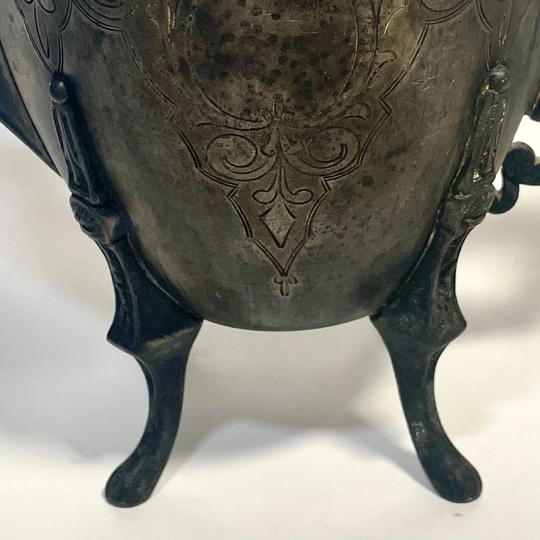Antique Silver/Silver Plate Teapot marked on the bottom 1872, E.W & O.Z. PELTON CONN MIDDLETOWN. Ornate design, Britannia Lion head and feet, Bakelite Accents On Handle. E.W & O.Z. PELTON and Pelton Bros & Co. is known for their quadruple plate tea sets.