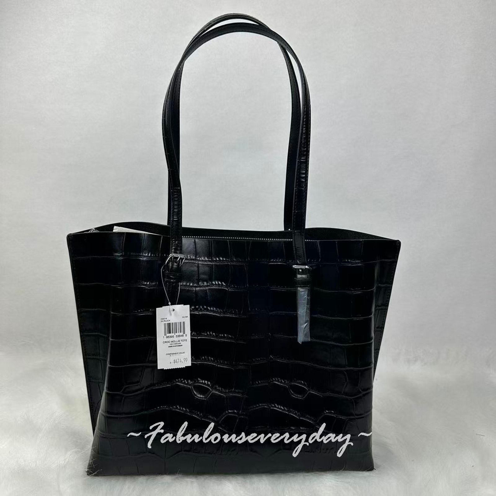 New With Tags, Coach Mollie Tote In Crocodile-embossed Leather/Silver/Black CW018 NWT from smoke and pet free environment.