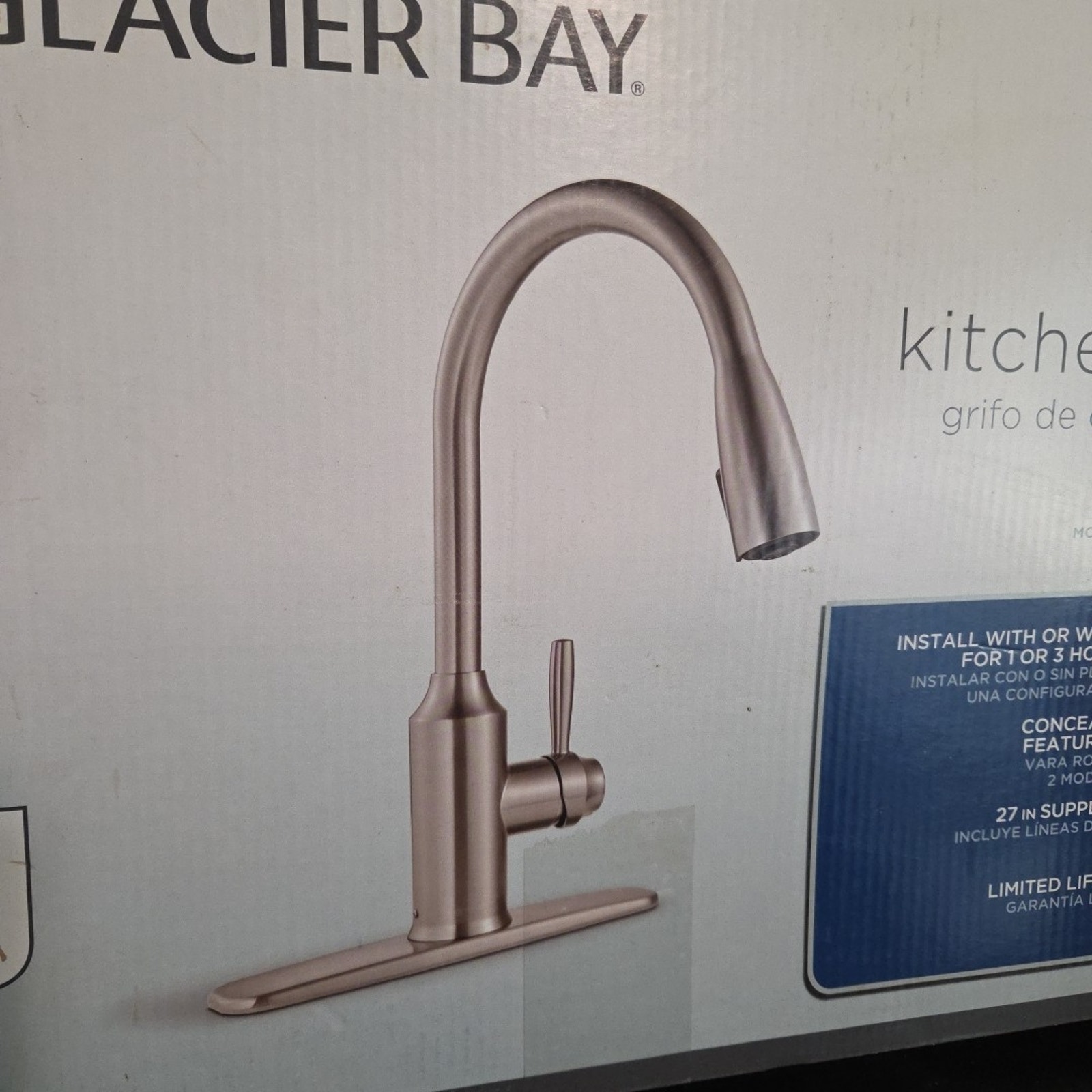 GLACIER BAY SINGLE-HANDLE PULL-DOWN SPRAYER KITCHEN FAUCET STAINLESS STEEL NOS