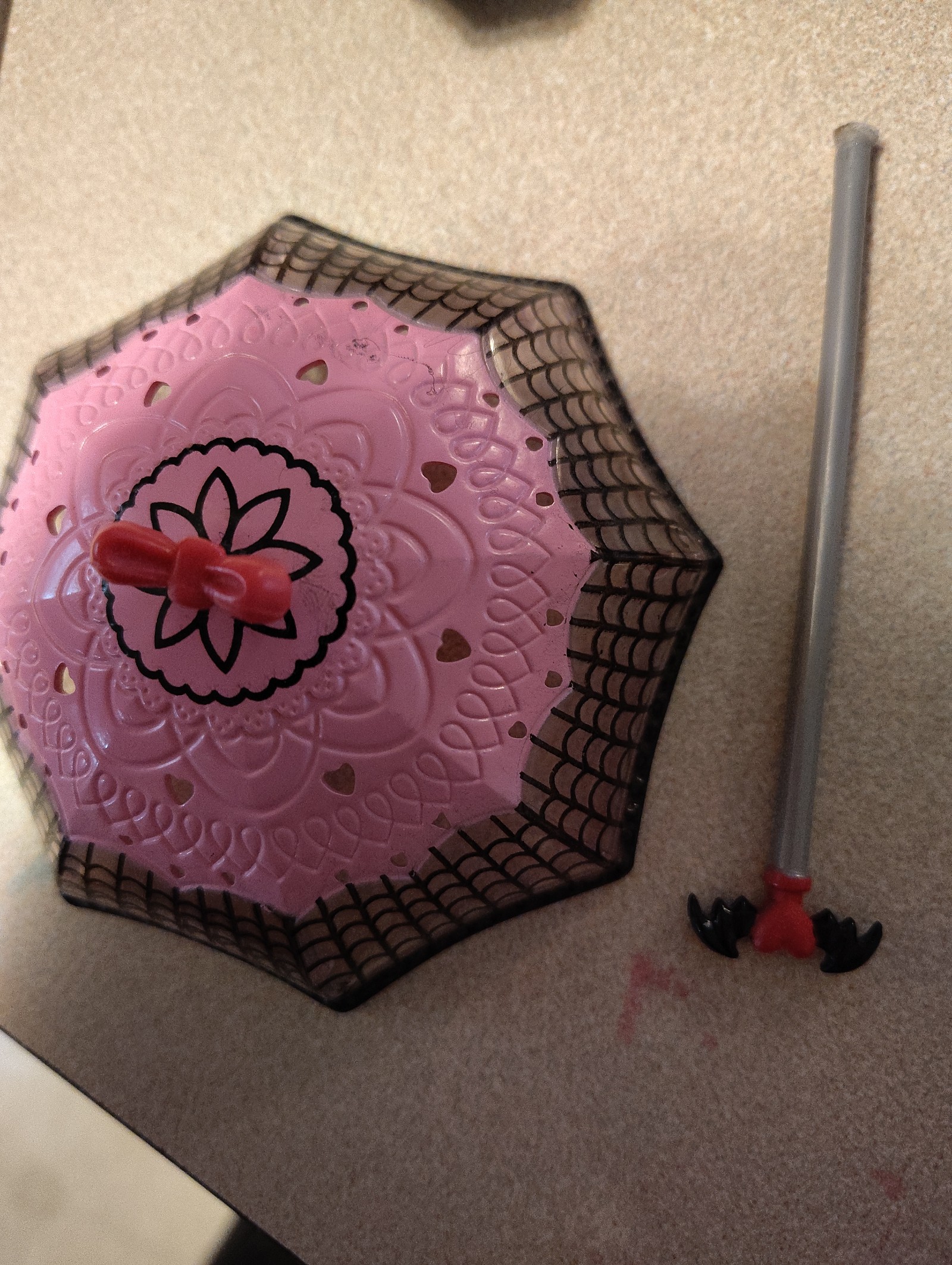 In this purchase you will receive this Monster High Draculaura and Clawd Forbitten love set. The umbrella stem is broken but you can glue it back on. When it came to me it was off but it was glued prior. He comes with his little pet as well and she has her purse. I believe they are complete. No rips or tears and his flocking is really nice on his hair. This is a really nice set to have. Sorry I will not be separating You got both or none. Please feel free to look through my store I do have other dolls and accessories. Thank you have a great day