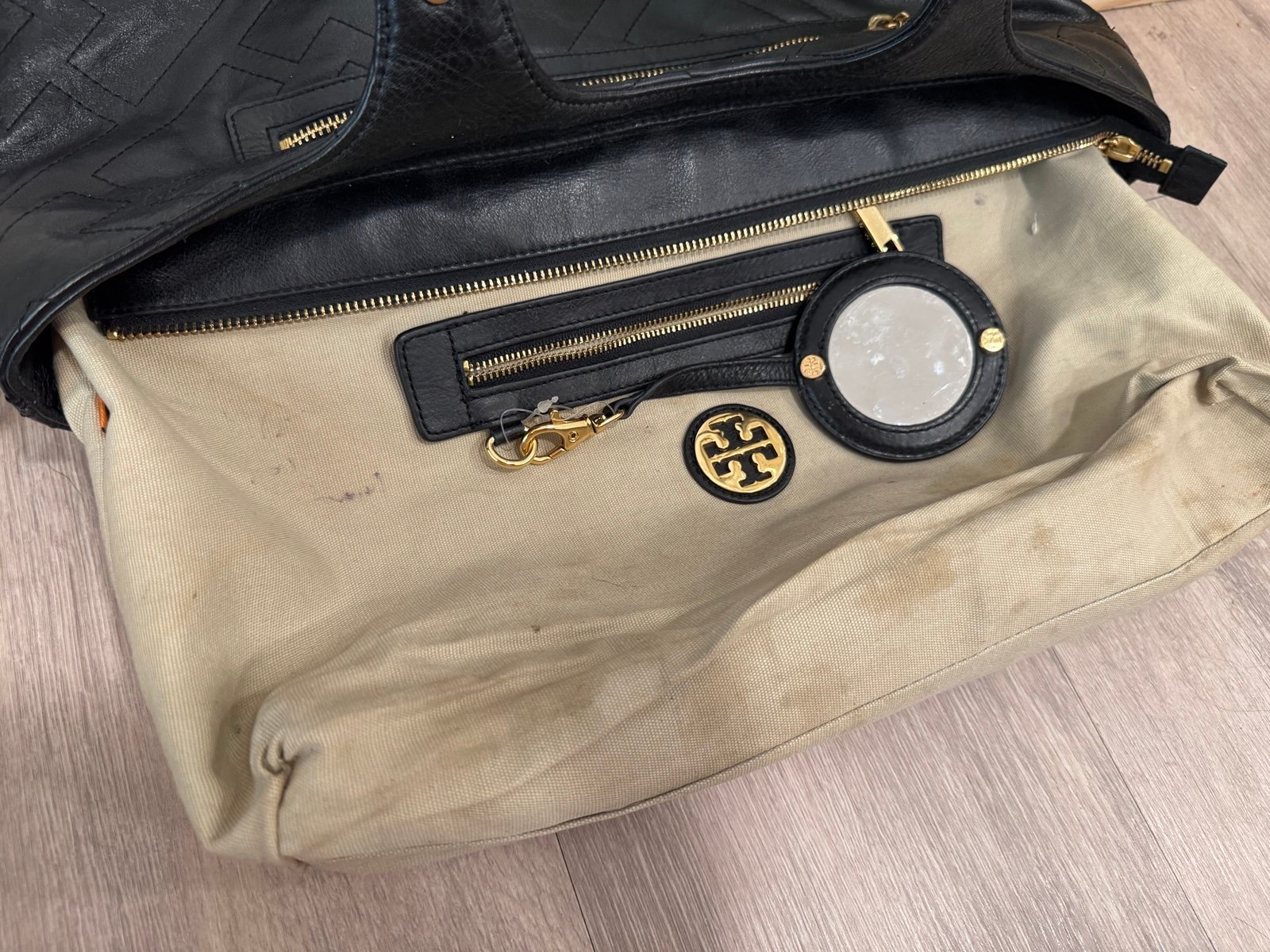 Good condition. Inside have some stains from storing. 2side packets and 1 zipped pocket. Outside also have 1 zipped pocket. No rip or tear.