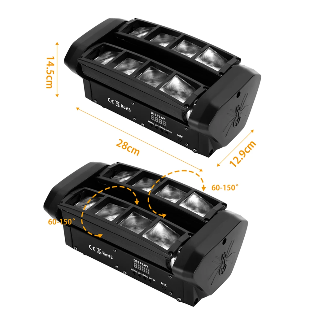 U'King 2Pcs 48W Laser Beam Moving Head Light 8LEDs RGBW Mini Spider Stage Light DMX&Sound Control For Club DJ Show Home Party